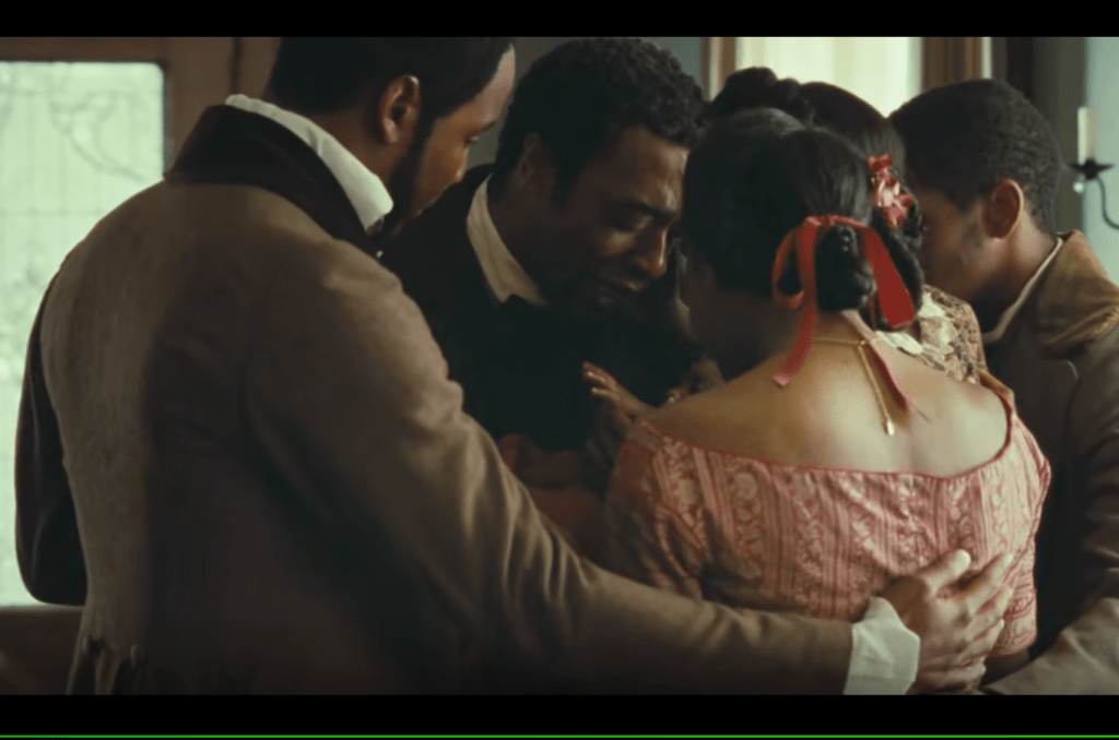 The main theme of this movie is freedom. After being sold as a slave, Soloman never gives up. He suffers and bears all those pain in order to set himself back free. Those scars on his back are the best evidence. There are a few scenes which show Soloman staring at somewhere far away for a long time. They indicate Soloman’s desire of freedom.